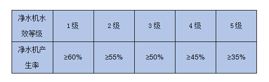凈水機(jī)水效等級:凈水機(jī)的水效等級分為5級,其中5級水效最低