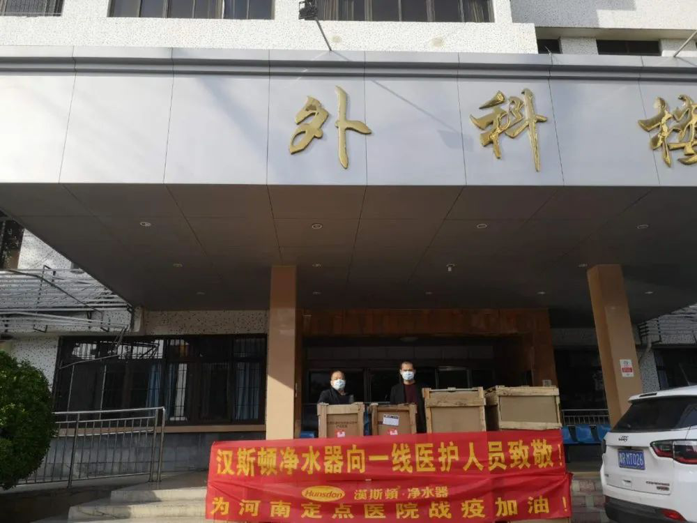 2020年3月11日,為應(yīng)對一線定點(diǎn)醫(yī)院抗疫防控需求,切實(shí)關(guān)注醫(yī)護(hù)人員健康防護(hù)安全,漢斯頓集團(tuán)向南陽醫(yī)專第一附屬醫(yī)院捐贈(zèng)商用飲水臺、凈水器和多用途空氣凈化器等產(chǎn)品,為奮戰(zhàn)在抗“疫”一線的醫(yī)護(hù)人員提供多方位的防護(hù)保障。