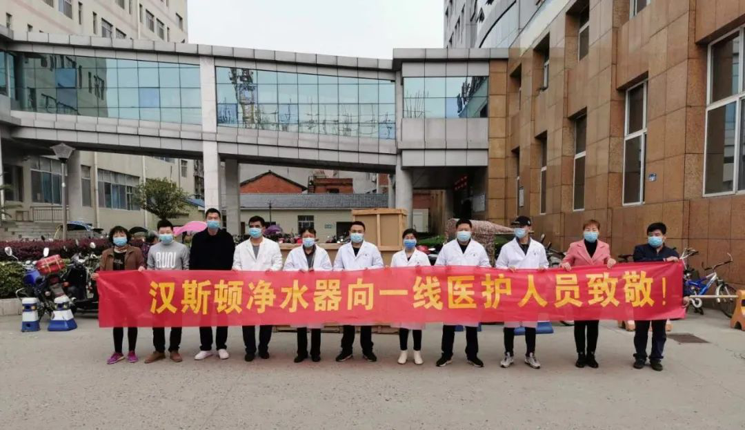 2020年2月,漢斯頓集團(tuán)捐贈(zèng)大批反滲透凈水器及配件物資發(fā)往湖北咸寧市第一人民醫(yī)院、咸寧市中醫(yī)醫(yī)院、咸寧市中心醫(yī)院動(dòng)力科、黃岡市紅安縣人民醫(yī)院、中醫(yī)醫(yī)院新院區(qū)、高橋鎮(zhèn)衛(wèi)生院等,為奮戰(zhàn)在抗擊新型冠狀病毒肺炎一線人員的安全飲用水起到防護(hù)作用,也為疫情抗擊盡到企業(yè)的力量!積極響應(yīng)疫情防控,漢斯頓在行動(dòng)!