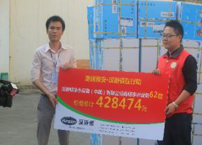 2013年4月,在四川省雅安市蘆山縣發(fā)生地震,,漢斯頓作為深圳首批捐贈(zèng)企業(yè)迅速做出反應(yīng),第一時(shí)間出去漢斯頓公益團(tuán)隊(duì)30余人,帶上捐贈(zèng)物質(zhì),設(shè)備及食品,前往災(zāi)區(qū)一線,進(jìn)行救援活動(dòng)。對于災(zāi)區(qū)首期重建工作,漢斯頓將捐贈(zèng)價(jià)值100萬的凈水設(shè)備,來保障災(zāi)區(qū)人民的飲水安全。