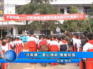2013年3月,漢斯頓進(jìn)入四川。一共為大英縣隆盛鎮(zhèn)石門小學(xué)、隆盛鎮(zhèn)民主初中、大英特殊教育學(xué)校、象山鎮(zhèn)黃蓮小學(xué)、南充市蓬安鎮(zhèn)長遠(yuǎn)村小學(xué)捐贈(zèng)價(jià)值五十余萬元的凈水設(shè)備、文具、風(fēng)扇、雨衣等。